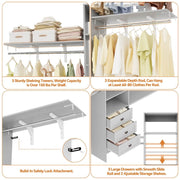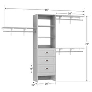 96 inch Heavy Duty Closet Organizer with 3 Drawers, Shelvs and Hanging Rods